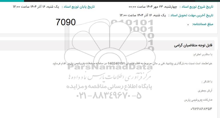 برای شرکت در مناقصه حتما از تصویر آگهی در سایت پارس نماد داده ها استفاده نمایید