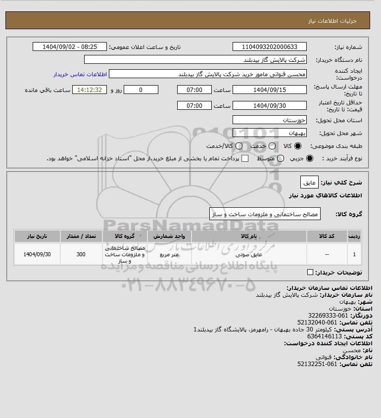 نام سازمان خریدار: شرکت پالایش گاز بیدبلند