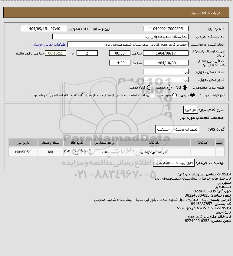نام سازمان خریدار: بیمارستان شهیدصدوقی یزد