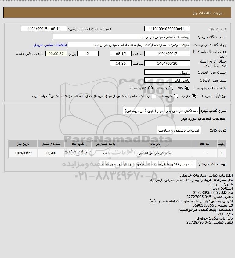شرح کلی نیاز: دستکش جراحی بدون پودر (طبق فایل پیوستی)