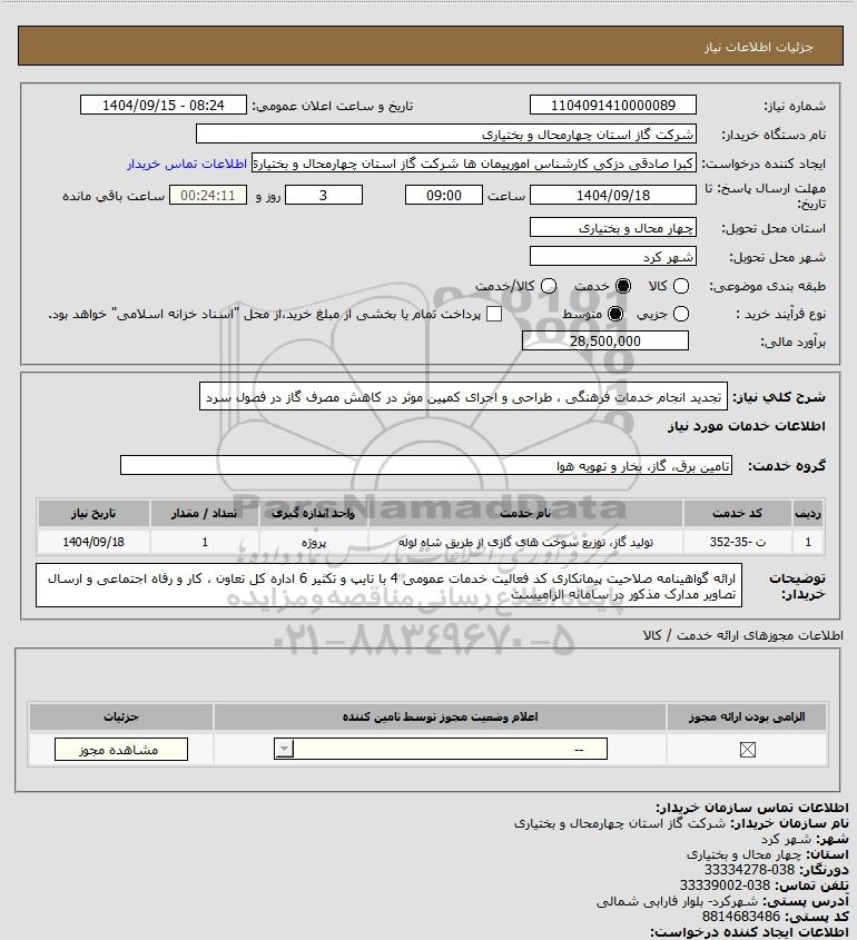 نام دستگاه خریدار:شرکت گاز استان چهارمحال و بختیاری