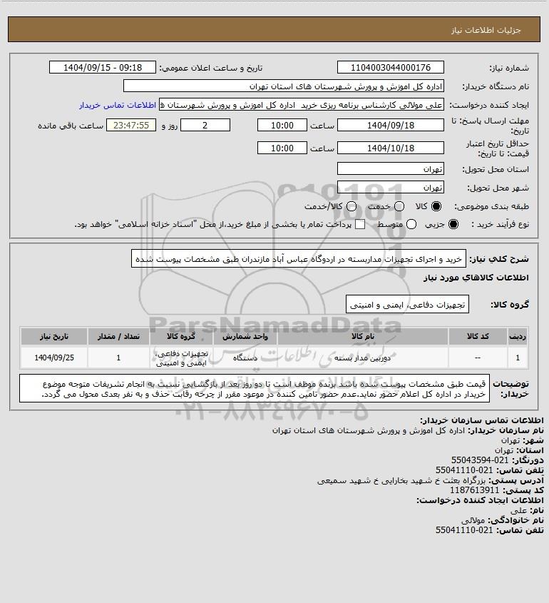 نام دستگاه خریدار:اداره کل اموزش و پرورش شهرستان های استان تهران