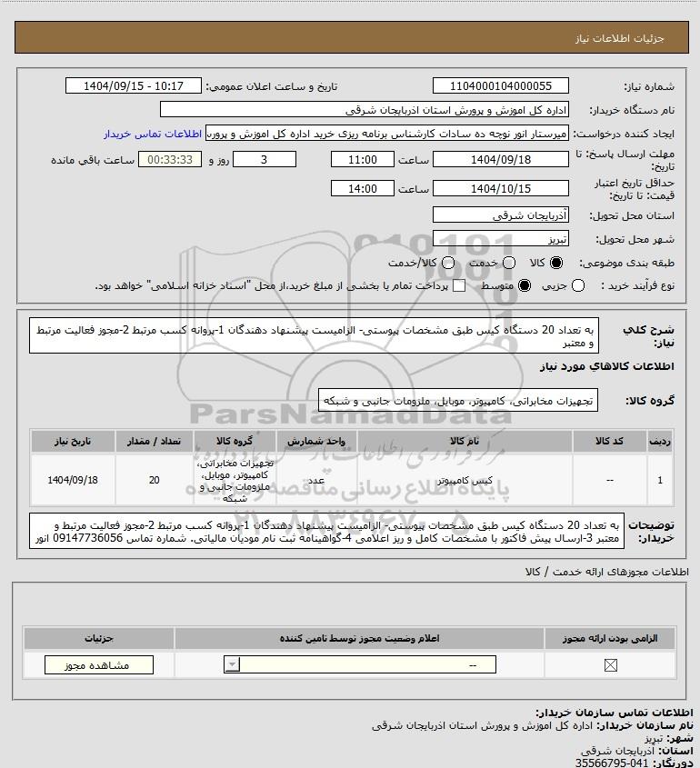 نام دستگاه خریدار:اداره کل اموزش و پرورش استان اذربایجان شرقی