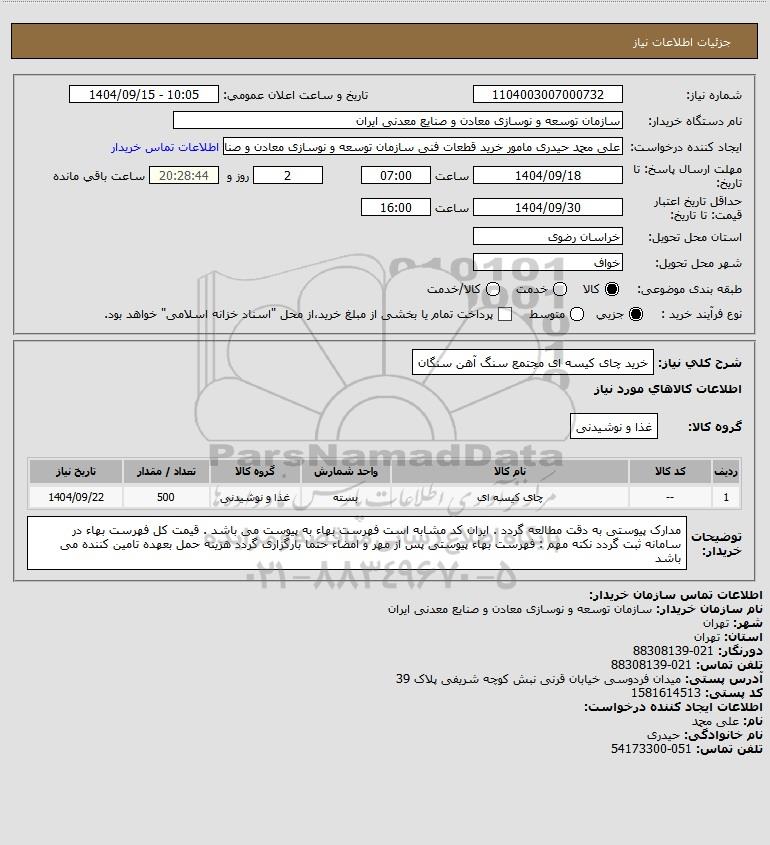 نام دستگاه خریدار:سازمان توسعه و نوسازی معادن و صنایع معدنی ایران