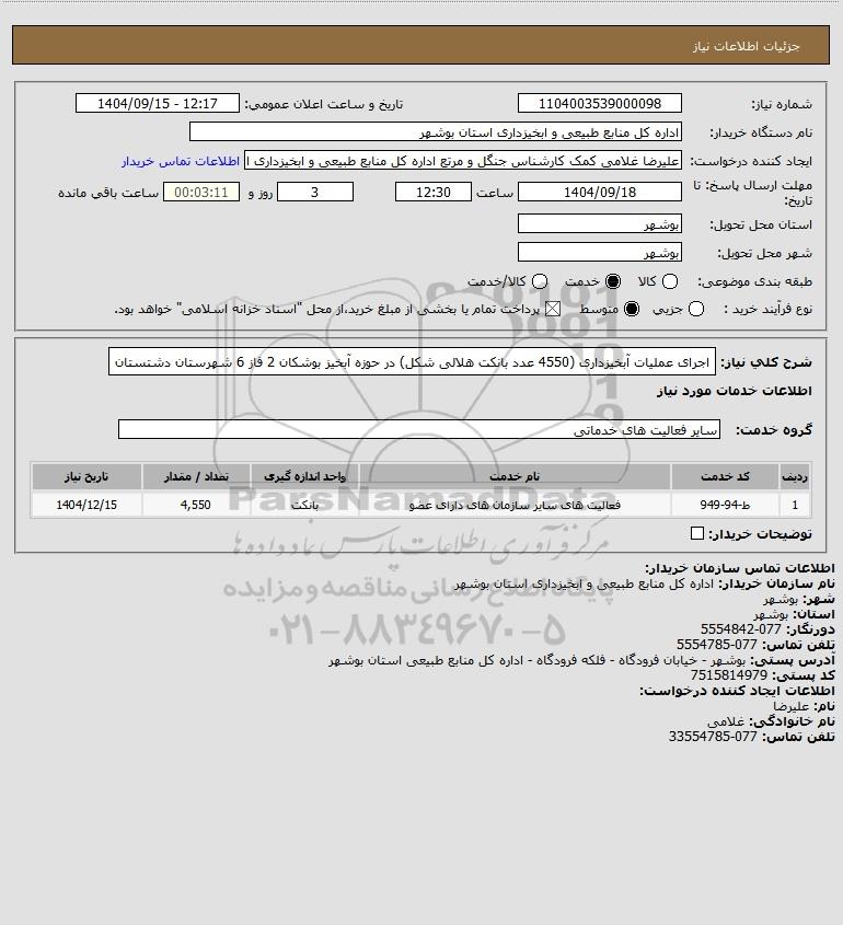 نام سازمان خریدار: اداره کل منابع طبیعی و ابخیزداری استان بوشهر