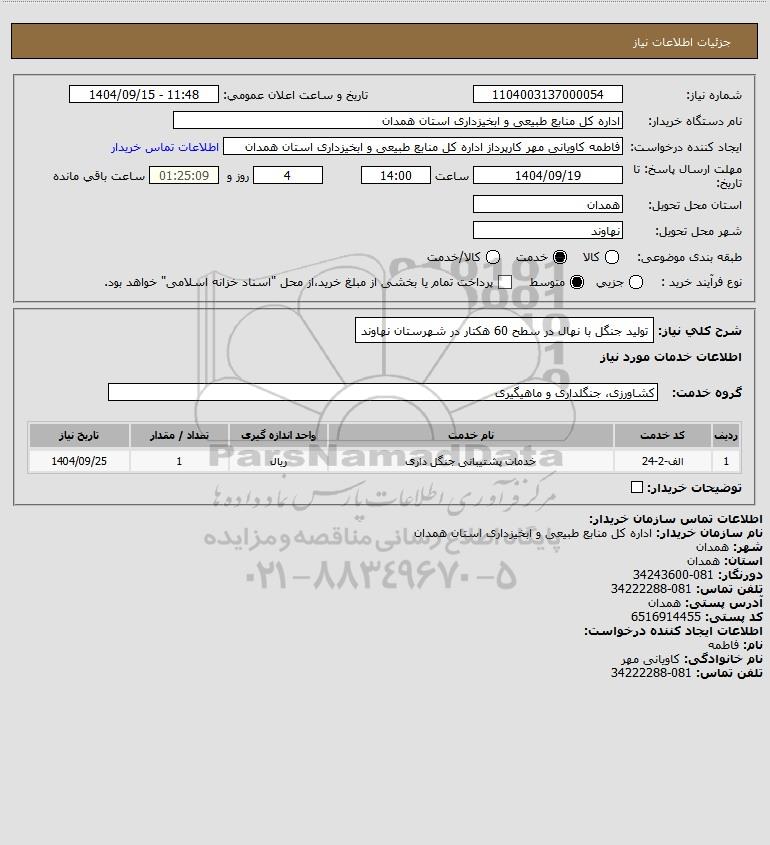 شرح کلی نیاز: تولید جنگل با نهال در سطح 60 هکتار در شهرستان نهاوند
