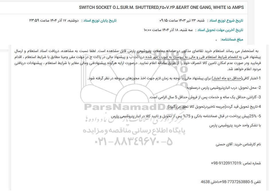 استعلام SWITCH SOCKET O.L.SUR.M. SHUTTERED,250.V.2P.&EART ONE GANG, WHITE 15 AMPS, استعلام SWITCH SOCKET O.L.SUR.M. SHUTTERED,250.V.2P.&EART ONE GANG, WHITE 15 AMPS