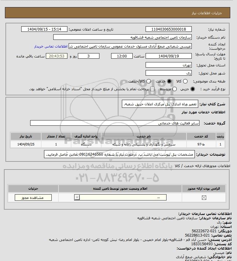 نام سازمان خریدار: سازمان تامین اجتماعی شعبه فشافویه