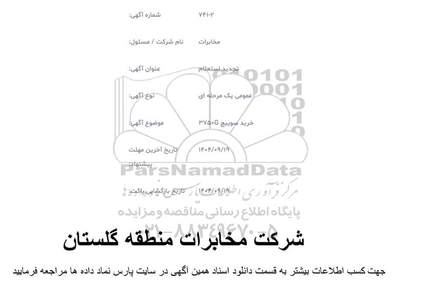 برای شرکت در مناقصه حتما از تصویر آگهی در سایت پارس نماد داده ها استفاده نمایید