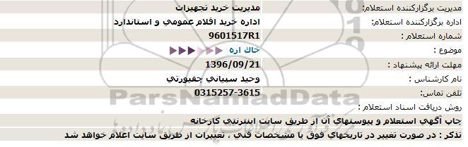اداره برگزارکننده استعلام: اداره خرید اقلام عمومی و استاندارد