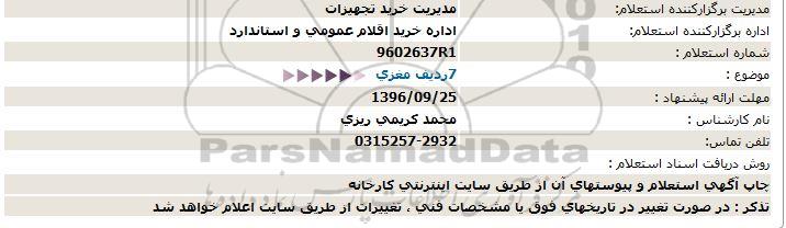 اداره برگزار کننده استعلام: اداره خرید اقلام عمومی و استاندارد