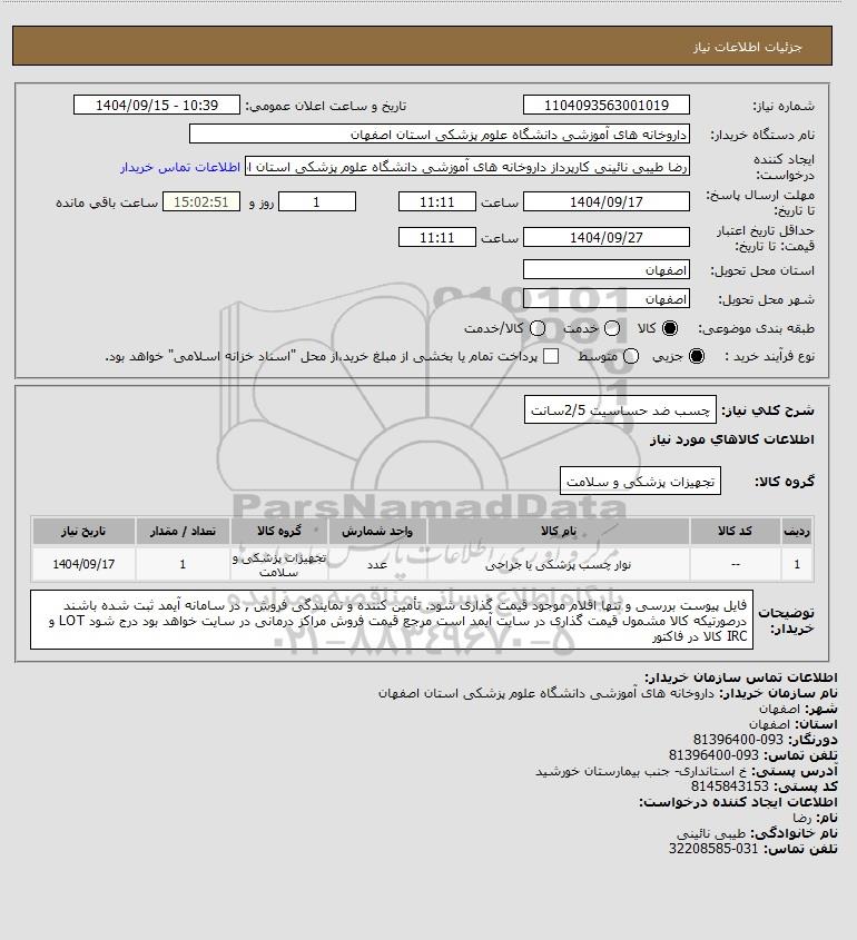 شرح کلی نیاز: چسب ضد حساسیت 2/5سانت