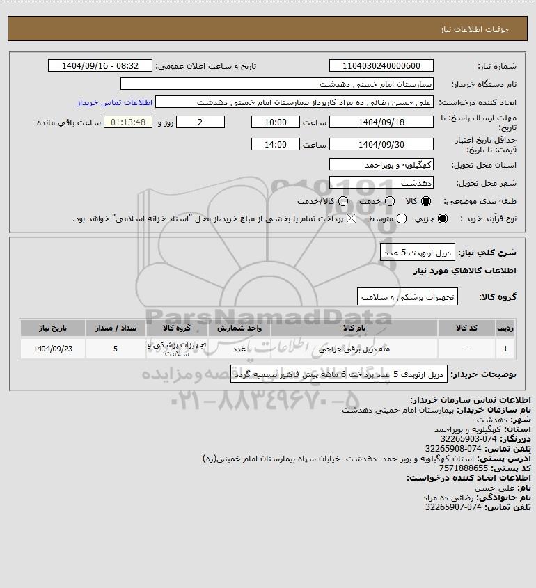 شرح کلی نیاز: دریل ارتوپدی 5 عدد