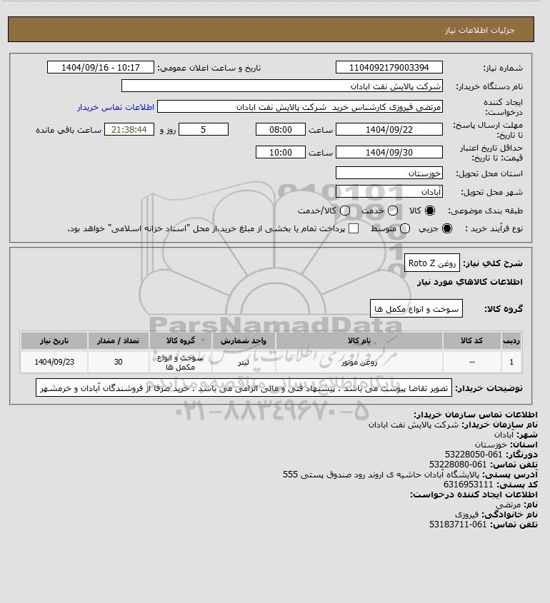 نام دستگاه خریدار:شرکت پالایش نفت ابادان