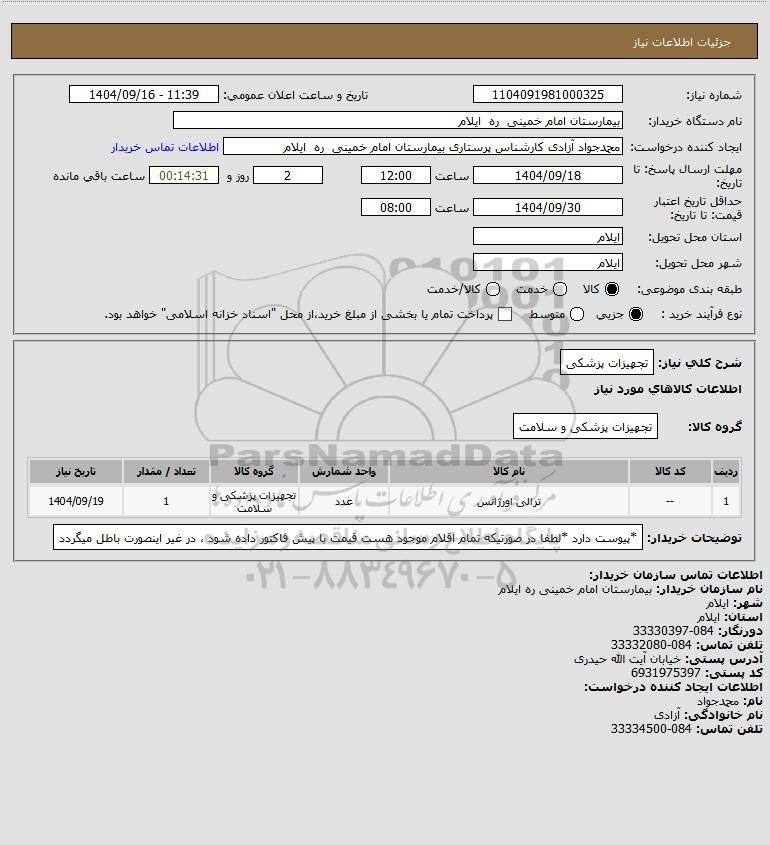 | 1 | -- | ترالی اورژانس | عدد | تجهیزات پزشکی و سلامت | 1 | 1404/09/19 |