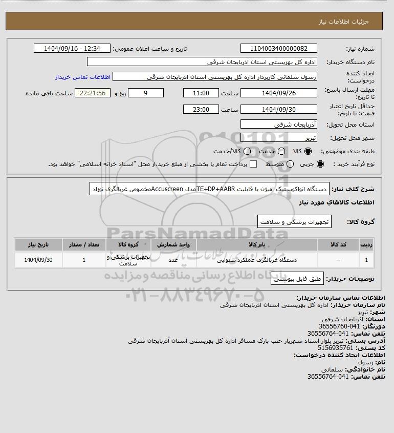 شماره نیاز: 1104003400000082
