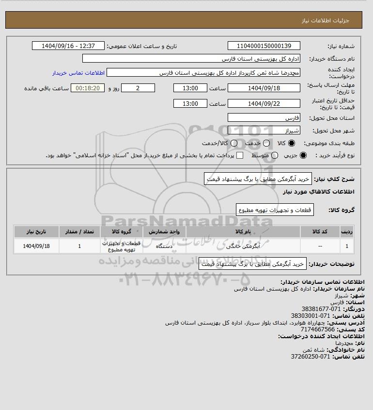 نام دستگاه خریدار:اداره کل بهزیستی استان فارس