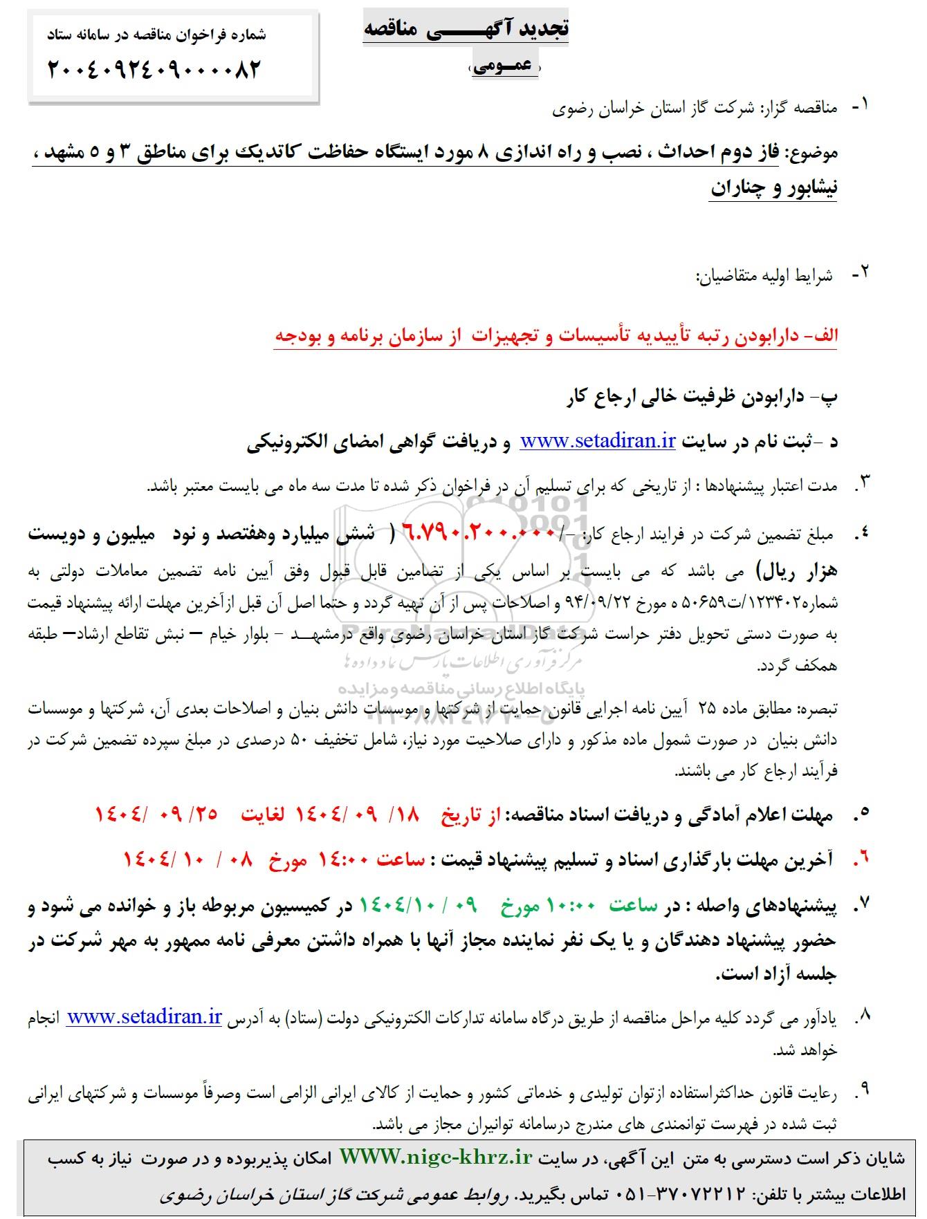 شماره فراخوان مناقصه در سامانه ستاد: 2004092409000082
