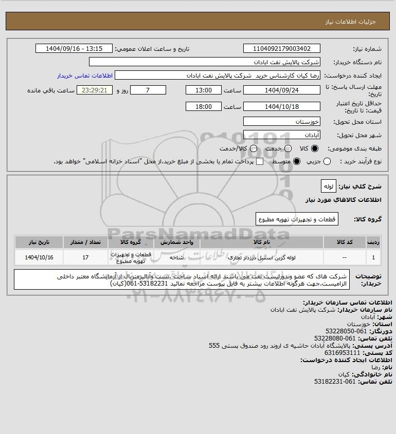 نام دستگاه خریدار:شرکت پالایش نفت ابادان