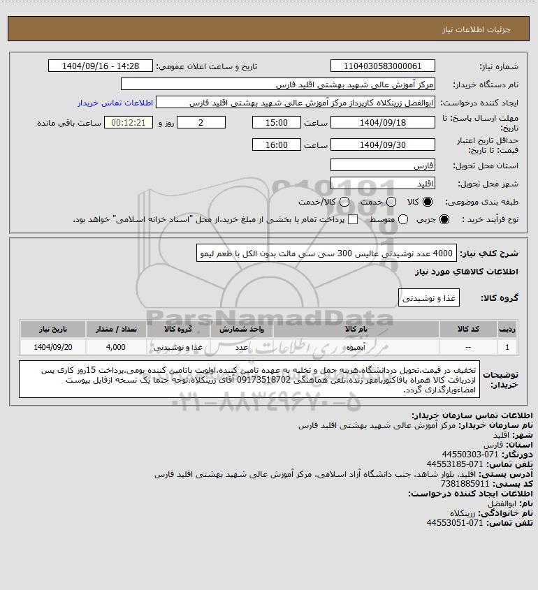 نام دستگاه خریدار:مرکز آموزش عالی شهید بهشتی اقلید فارس