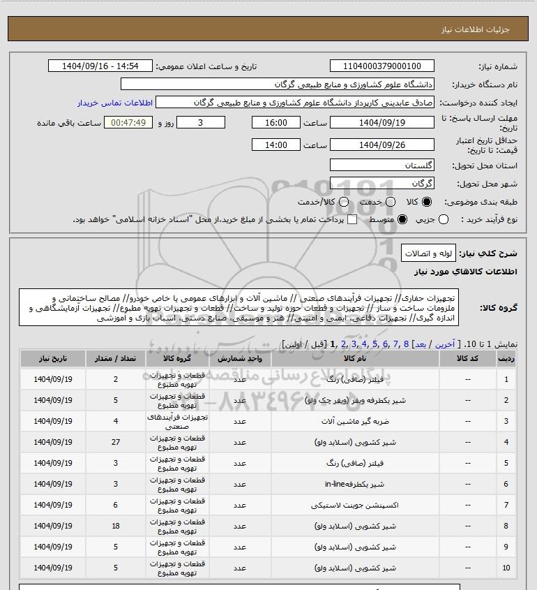 نام دستگاه خریدار:دانشگاه علوم کشاورزی و منابع طبیعی گرگان