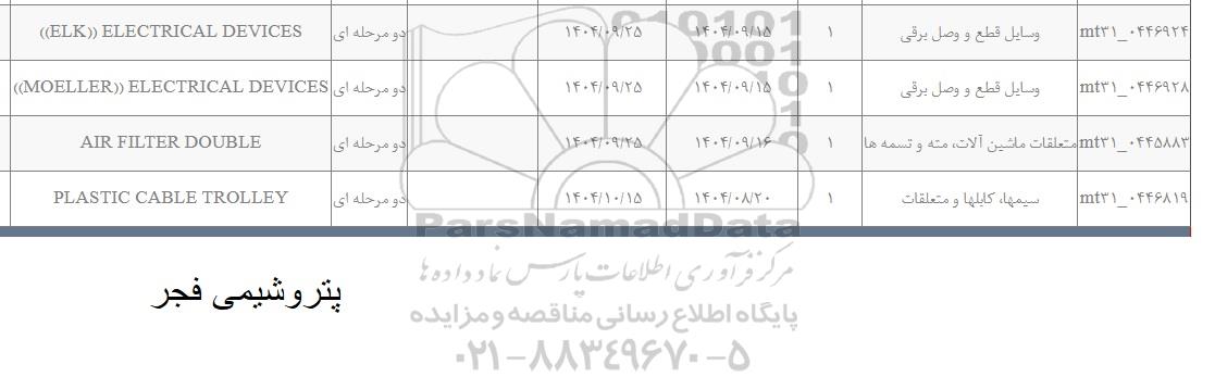 m31-0446924  وسایل قطع و وصل برقی 1 1404.09.25 دو مرحله ای  ((ELK)) ELECTRICAL DEVICES