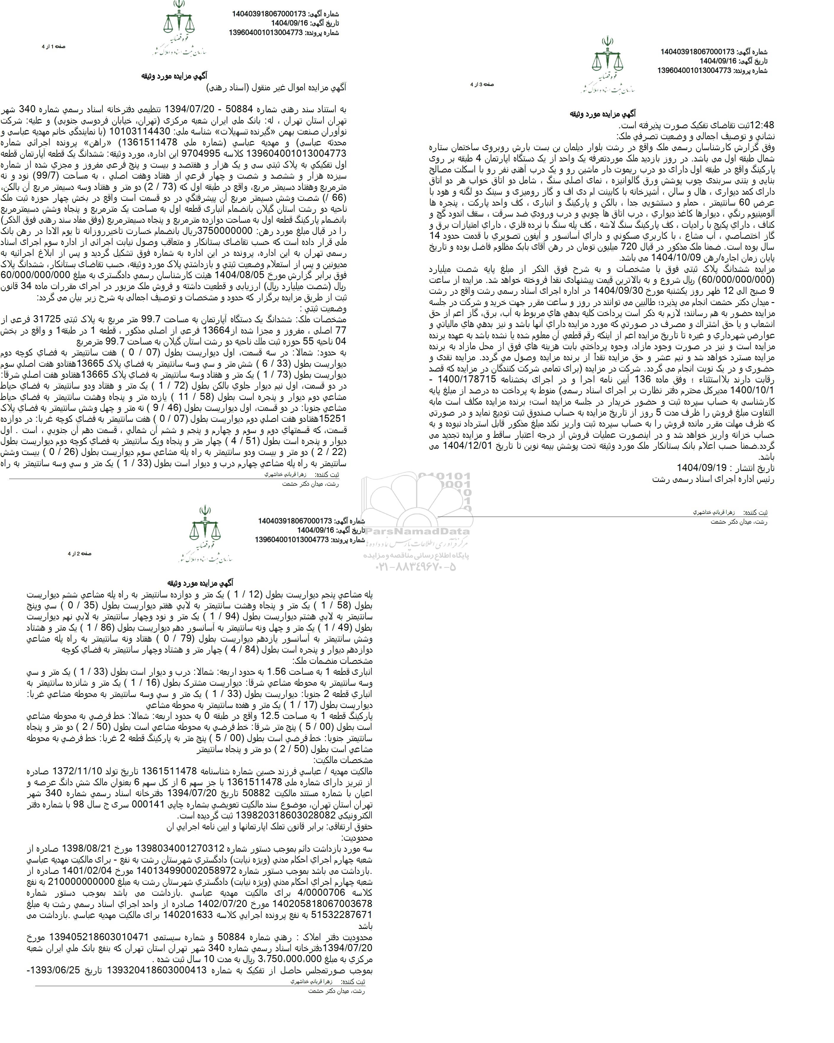 شماره آگهی : 140403918067000173