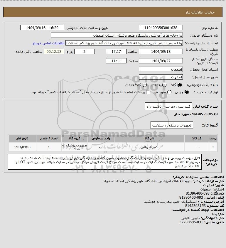 شرح کلی نیاز: کتتر سی وی سی 20سه راه