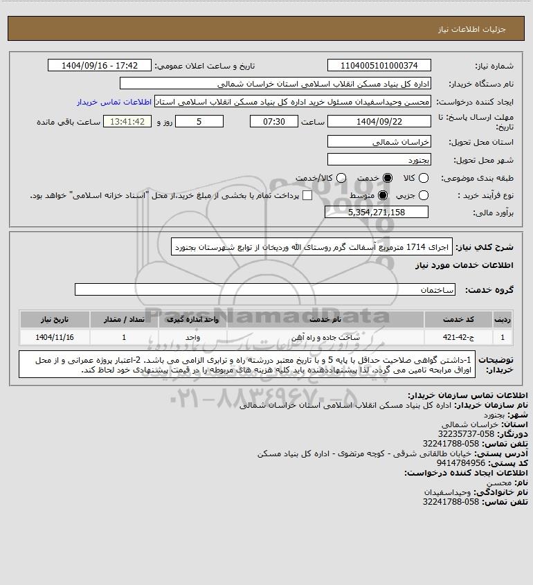 نام دستگاه خریدار:اداره کل بنیاد مسکن انقلاب اسلامی استان خراسان شمالی