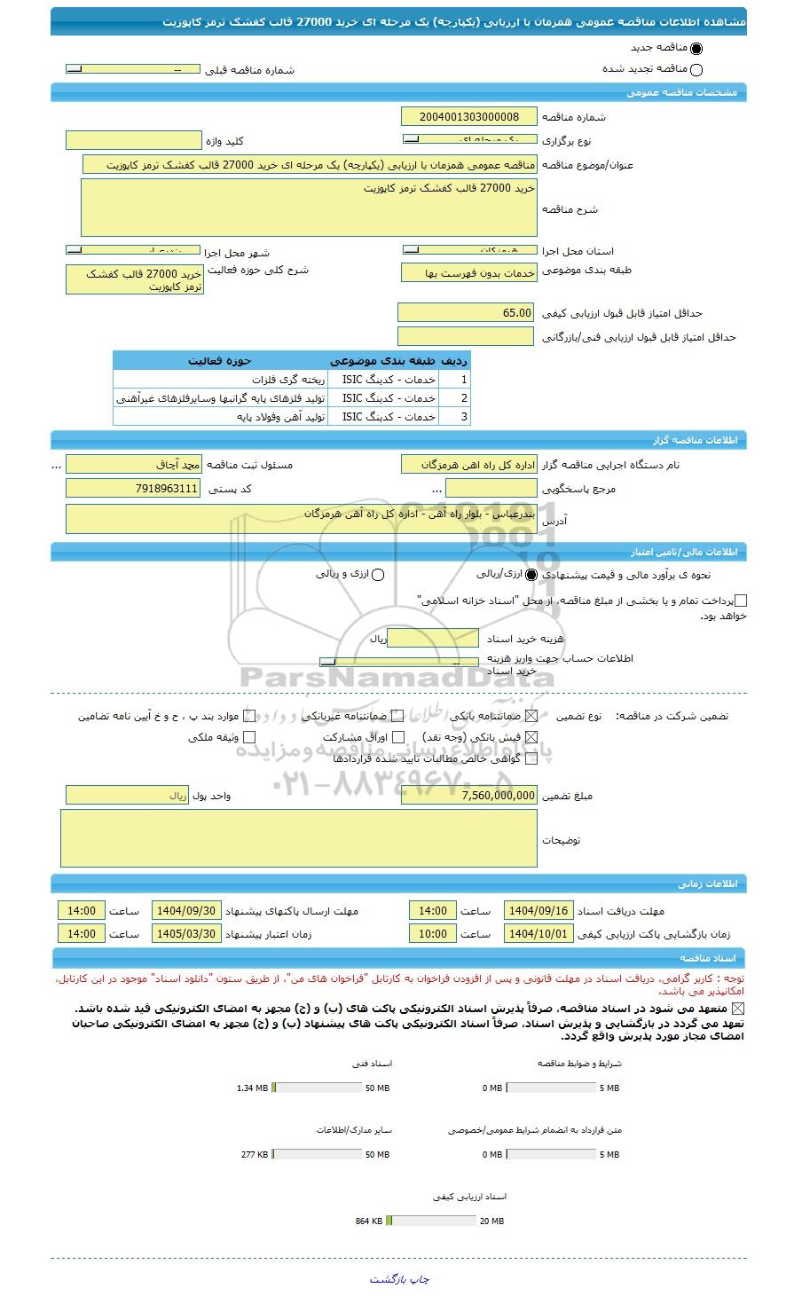 | مبلغ تضمین | 7,560,000,000 | واحد پول | ریال |