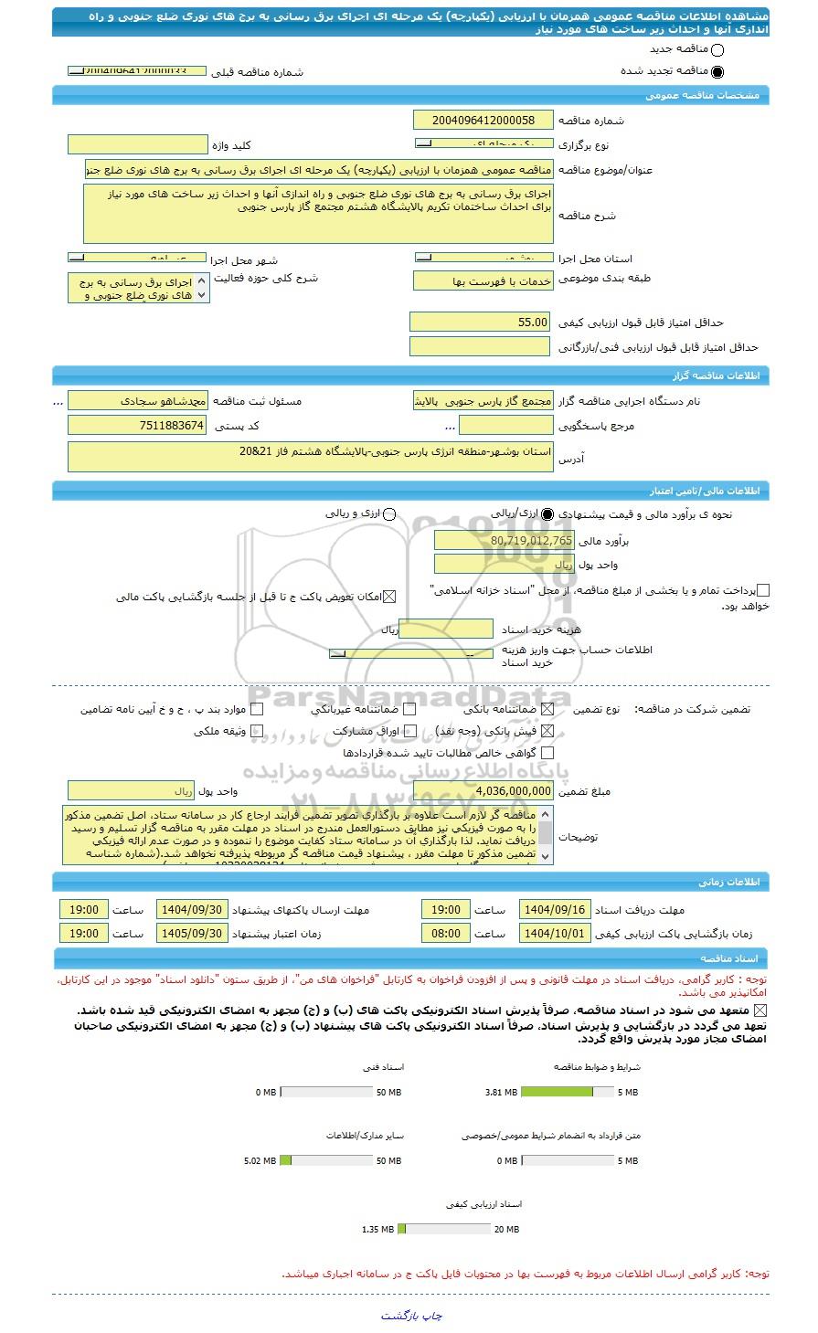 | مبلغ تضمین | 4,036,000,000 | واحد پول | ریال |