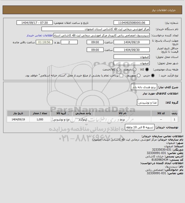 | 1 | -- | برنج | کیلوگرم | غذا و نوشیدنی | 1,000 | 1404/09/19 |