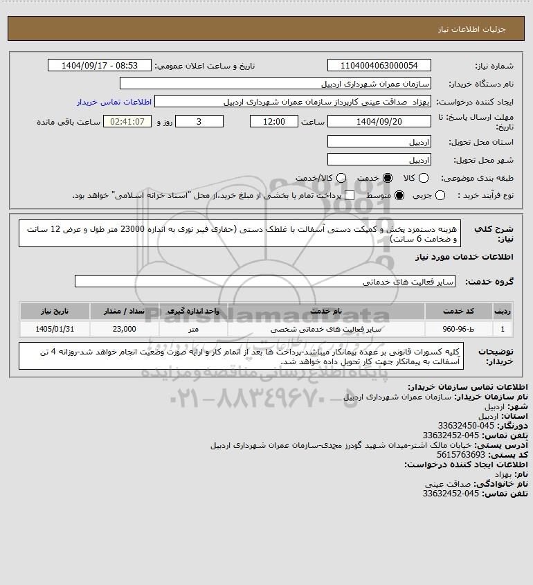 نام دستگاه خریدار:سازمان عمران شهرداری اردبیل