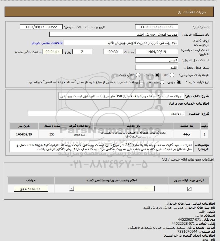 نام دستگاه خریدار:مدیریت اموزش وپرورش اقلید