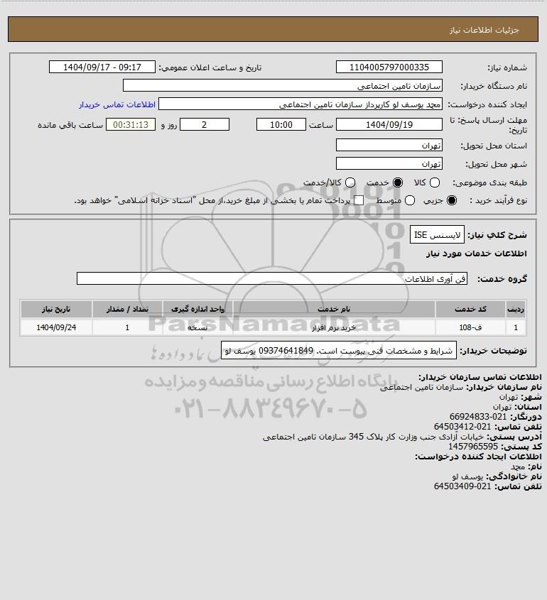 نام دستگاه خریدار:سازمان تامین اجتماعی