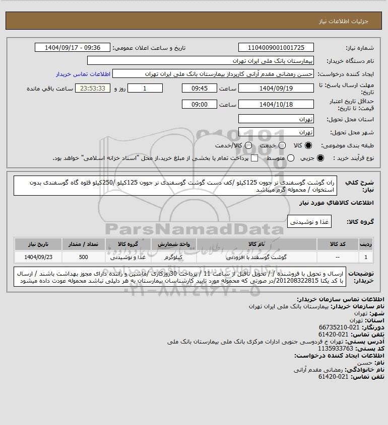 نام دستگاه خریدار:بیمارستان بانک ملی ایران تهران