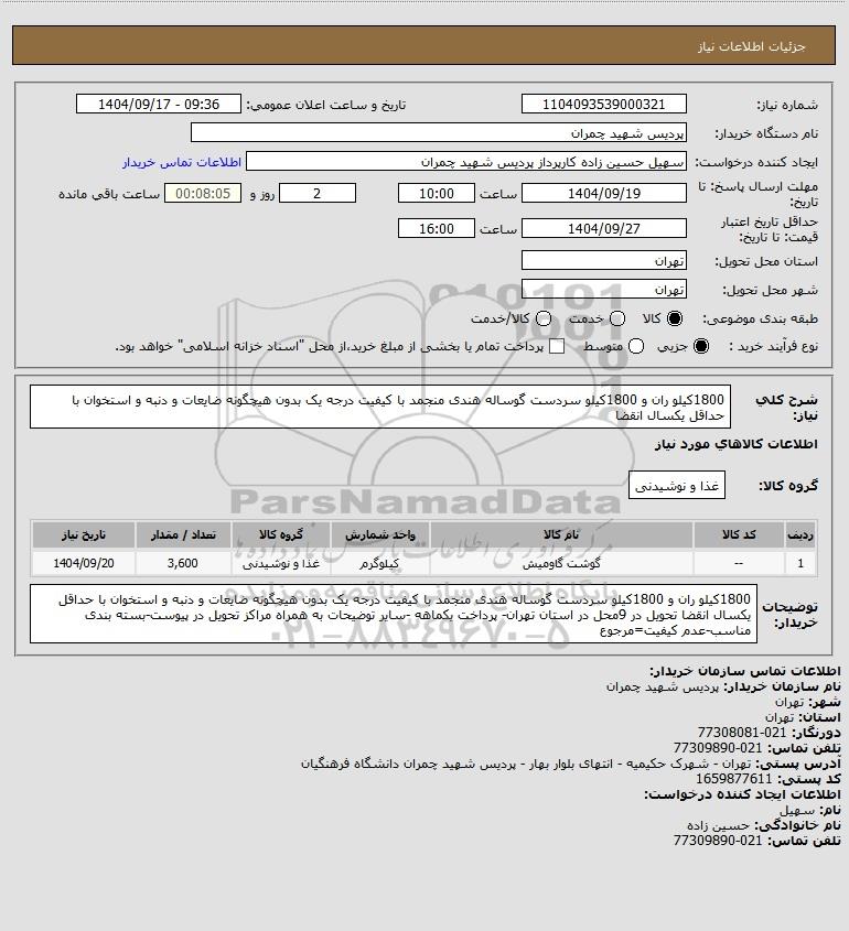 نام دستگاه خریدار:پردیس شهید چمران