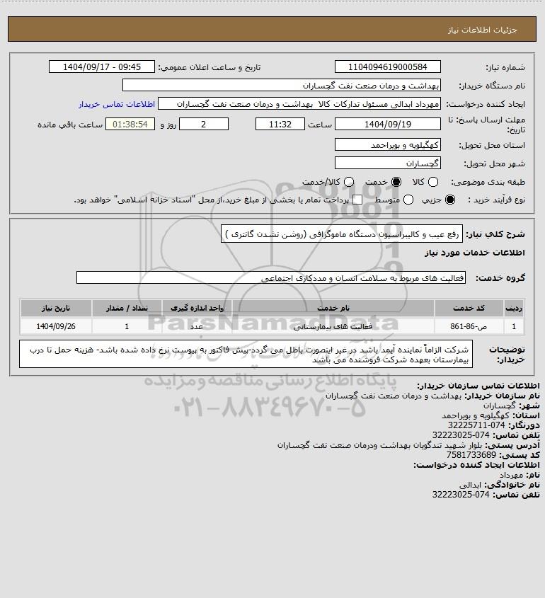 نام دستگاه خریدار:بهداشت و درمان صنعت نفت گچساران