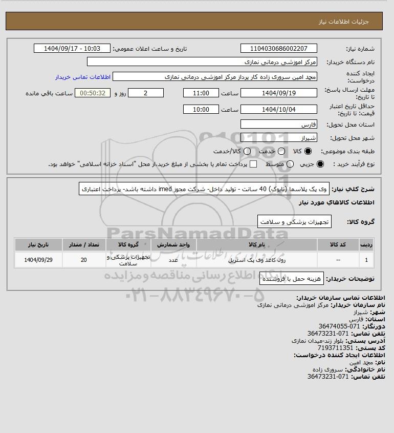 نام دستگاه خریدار:مرکز اموزشی درمانی نمازی