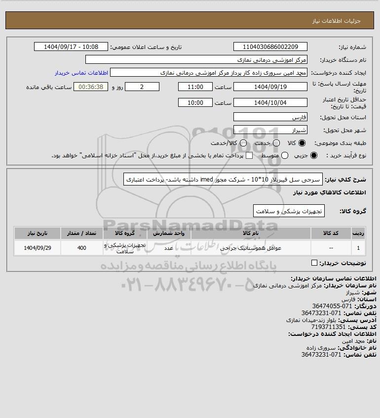 شرح کلی نیاز: سرجی سل فیبریلار 10*10 - شرکت مجوز imed داشته باشد- پرداخت اعتباری