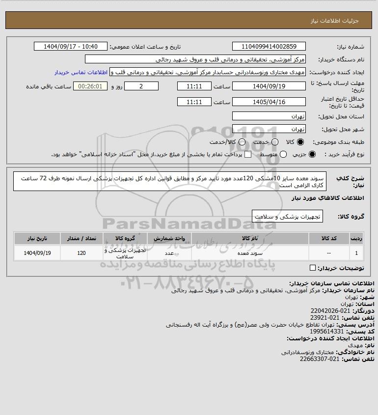 نام دستگاه خریدار:مرکز آموزشی، تحقیقاتی و درمانی قلب و عروق شهید رجائی