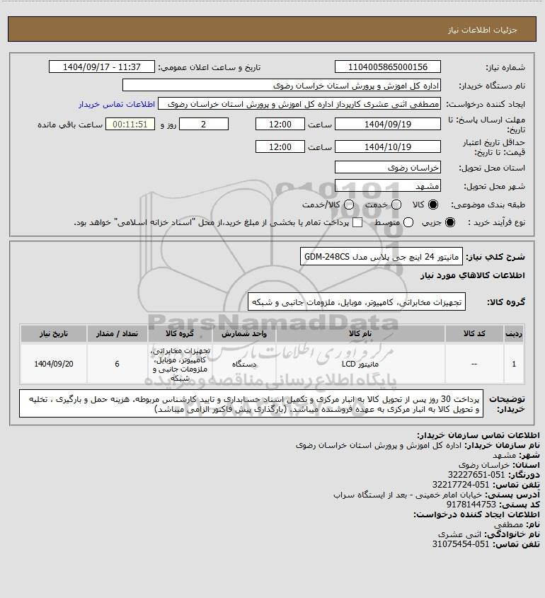 نام دستگاه خریدار:اداره کل اموزش و پرورش استان خراسان رضوی