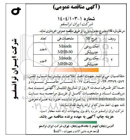 متقاضیان می توانند جهت اخذ اطلاعات بیشتر با شماره تلفن 33790572 - 024 از ساعت 17 - 8 تماس حاصل نموده و حداکثر ظرف مدت 7 روز از تاریخ انتشار آگهی نسبت به دریافت اسناد و مشخصات کامل از طریق مراجعه به سایت www.iran-transfo.com و یا اعزام نماینده خود به همراه معرفی نامه جهت اخذ مدارک و ارائه پاسخ اقدام نمایند.