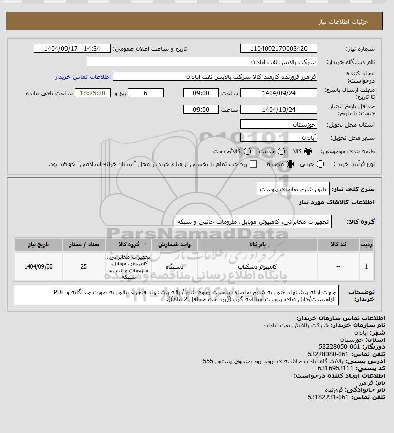 شماره نیاز: 1104092179003420
