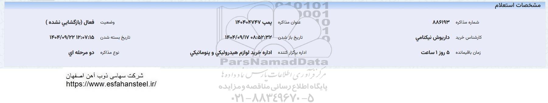 اداره برگزار کننده : اداره خرید لوازم هیدرولیکی و پنوماتیکی