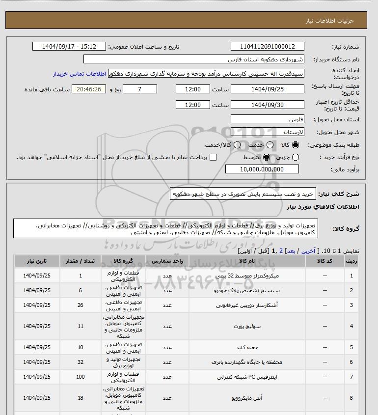 شرح کلی نیاز: خرید و نصب سیستم پایش تصویری در سطح شهر دهکویه
