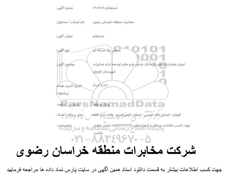 نام شرکت / مسئول: مخابرات منطقه خراسان رضوی