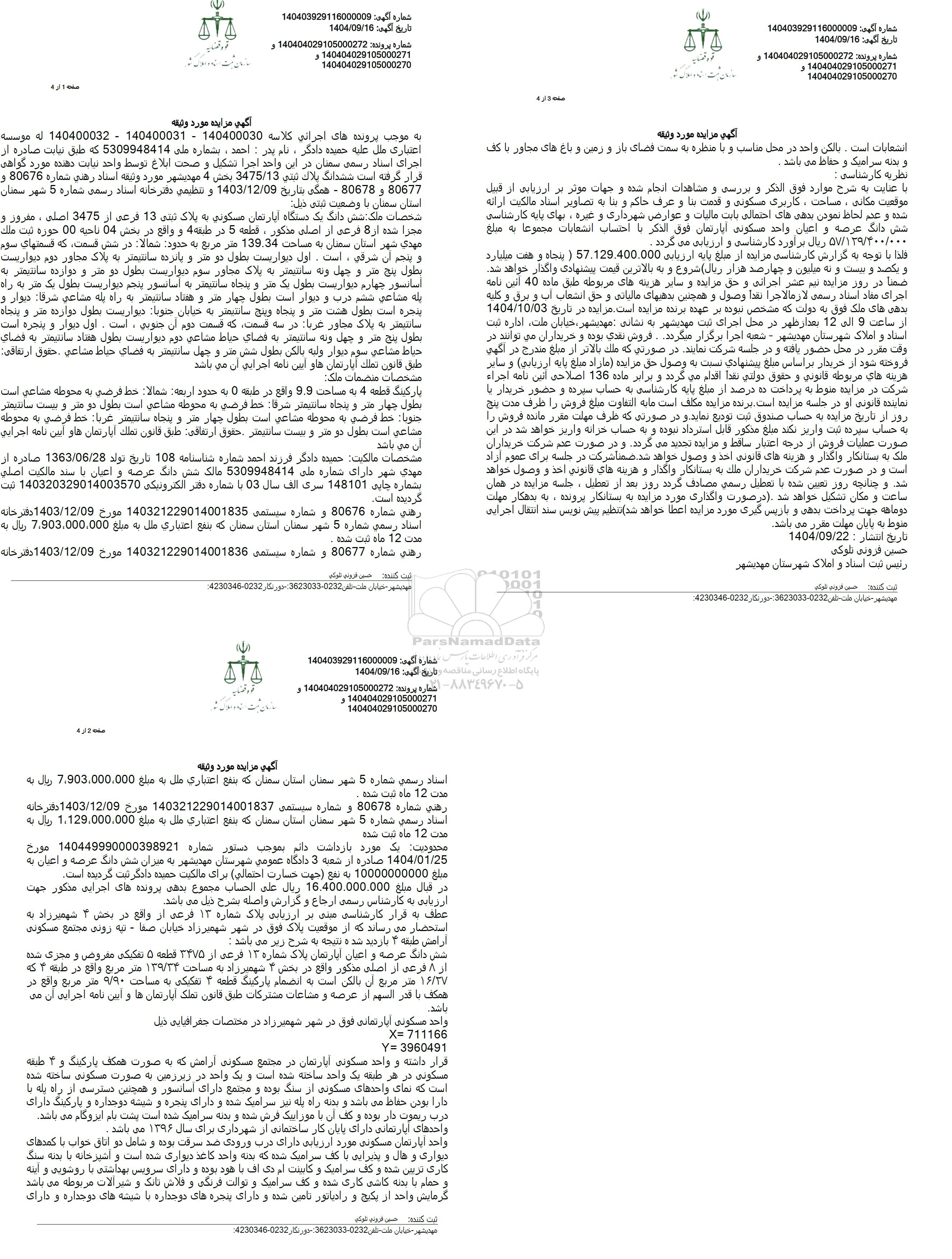 شماره آگهی: 140403929116000009