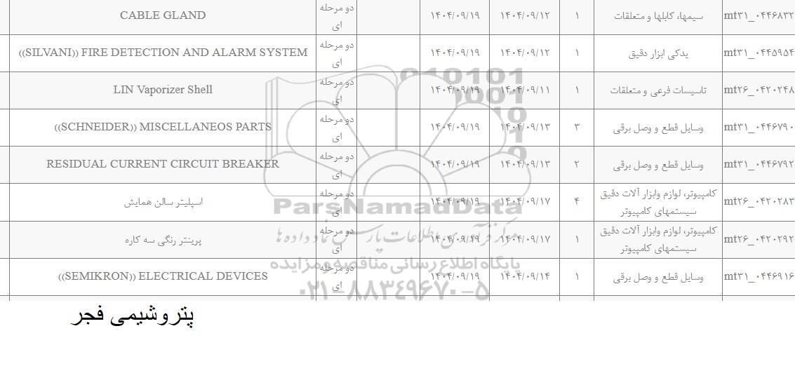| mt26-0420283 | کامپیوتر، لوازم و ابزارآلات دقیق سیستمهای کامپیوتر | 4 | 1404.09.19 | دومرحله ای | اسپلیتر سالن همایش |