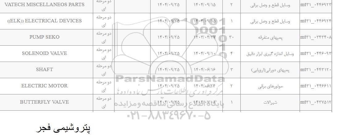 | mt31-0437512 | شیرآلات | 1 | 1404.09.25 | دومرحله ای | BUTTERFLY VALVE |